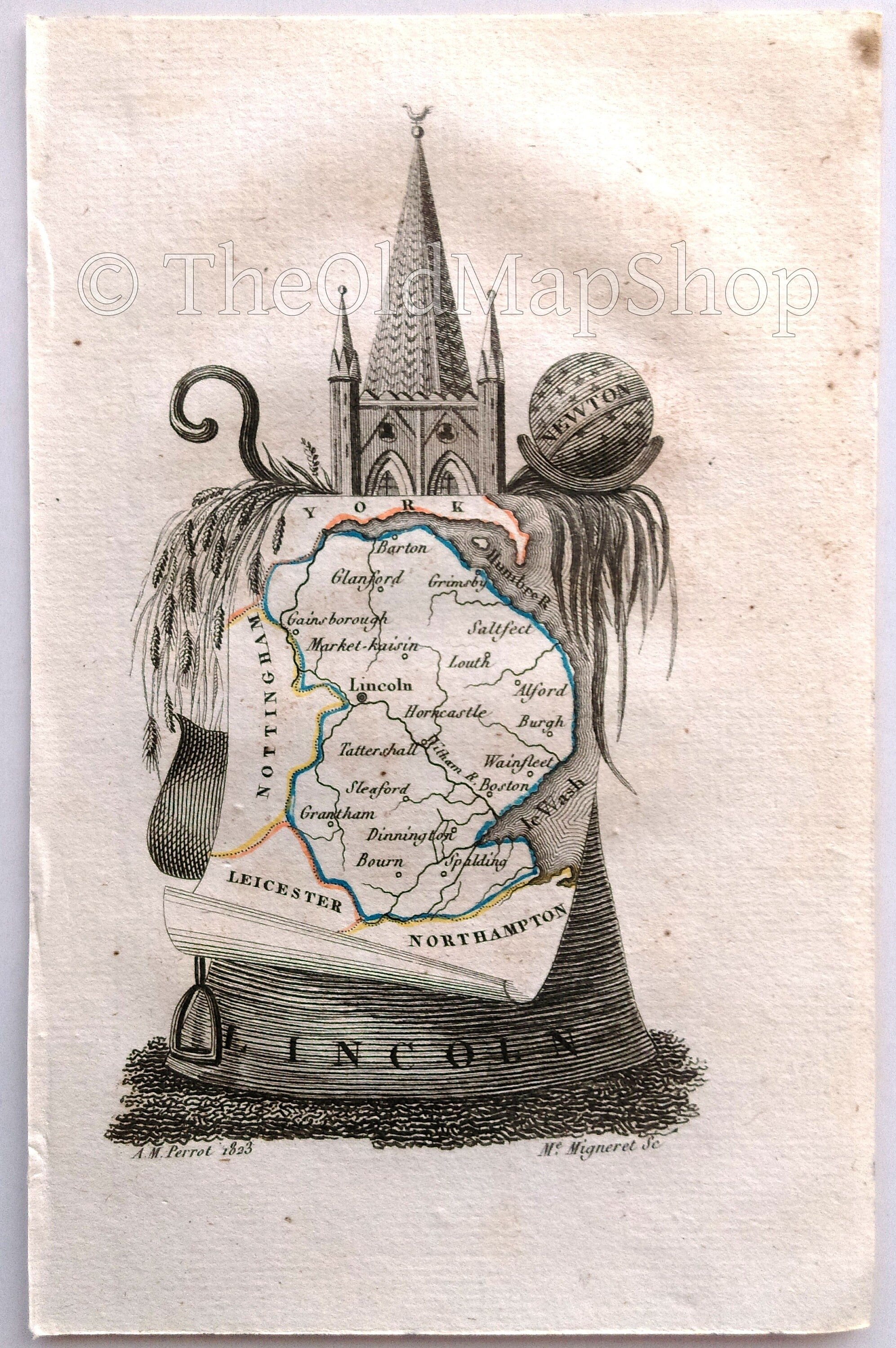 1823 Scarce A. M. Perrot Antique County Map, Lincoln, Lincolnshire